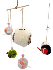 ・完成したらモビールにします。ゆらゆら動くシマエナガたちがとてもかわいらしくインテリアにぴったりです。